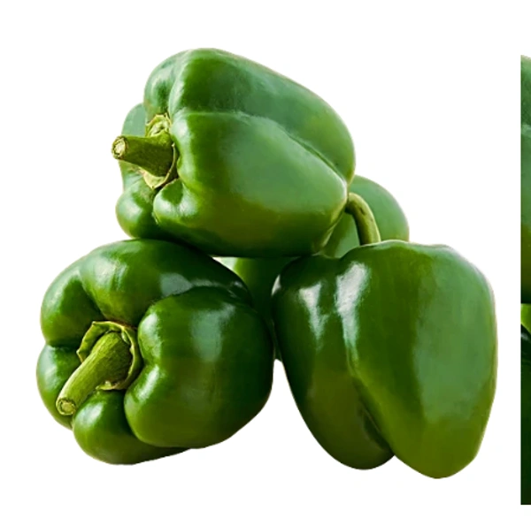 Green capsicum, known as bell pepper, is a versatile vegetable widely used in Indian cuisine. Its crisp texture and mild, slightly bitter flavour make it a favourite in curries, stir-fries, and salads across the country. In dishes like Paneer Tikka or Mixed Vegetable Sabzi, diced capsicum adds colour and enhances the overall taste. It is also a key ingredient in Indo-Chinese dishes like chilli paneer or vegetable Manchurian, where its crunchiness complements spicy sauces. Grown in various regions of India, green capsicum's popularity highlights its integration into both traditional and modern Indian cooking, prized for its culinary adaptability.